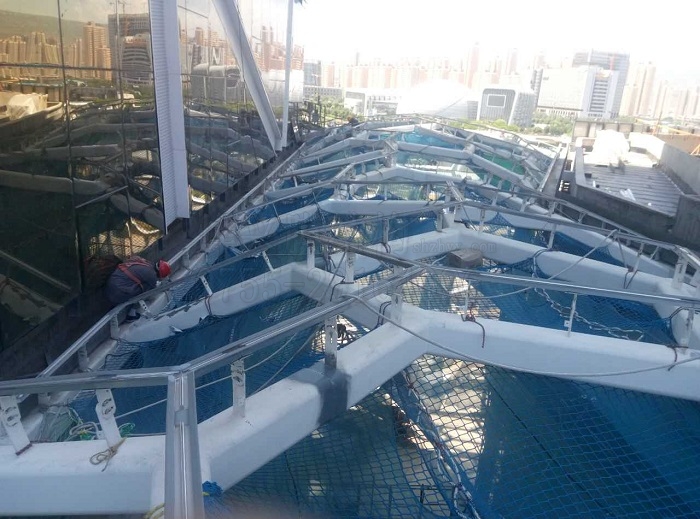 后期維護。ETFE膜結構和PTFE膜結構材料本身都具有氟材料的不沾特性,正常情況下雨水沖刷就能將表面的污垢沖刷干凈,PTFE和單層的ETFE膜結構建成以后幾乎不用怎么維護。當ETFE被做成氣枕膜結構以后,需要時刻保持一定的氣壓以維持其形狀和強度,后期需要關注和維護的情況就比較多,比如充氣系統的日常保養、漏氣檢查、氣枕是否變形等。總之,后期維護方面,PTFE可以放養,ETFE需要精心呵護。
